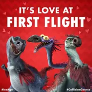 Buck explains to The Herd that according to the pillar, the asteroids had caused several extinctions in the past and with a massive one still incoming, he believes that the only place they could find a clue to stop it is on the site of the impact of the previous ones, as according to its engravings, they always fall at the same place. However, the three dromaeosaurs overhear their conversation, and Gavin and Gertie decide to stop them, believing that they could be safe from the impact, as they can fly, thus not only getting their revenge on Buck, but also killing all mammals and securing domination over Earth for their species. Roger is reluctant, but Gavin and Gertie strong-arm him into cooperating.